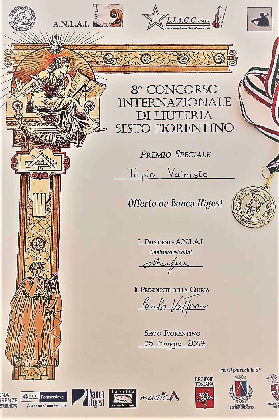 Hän on osallistunut useisiin kansainvälisiin viulunrakennuskilpailuihin. Vuonna 2017 hän sai kunniamaininnan alttoviululla Sesto Fiorentino:ssa Italiassa. 2016 hän saavutti 1. sijan viulusarjassa ja 2001 1. sijan alttoviululla ja 2. sijan viululla Suomen Viulunrakentajat ry:n järjestämässä kilpailussa. Tällä hetkellä hän on Suomen Viulunrakentajat ry:n puheenjohtaja sekä Varsinais-Suomen Viulunrakentajat ry:n puheenjohtaja.