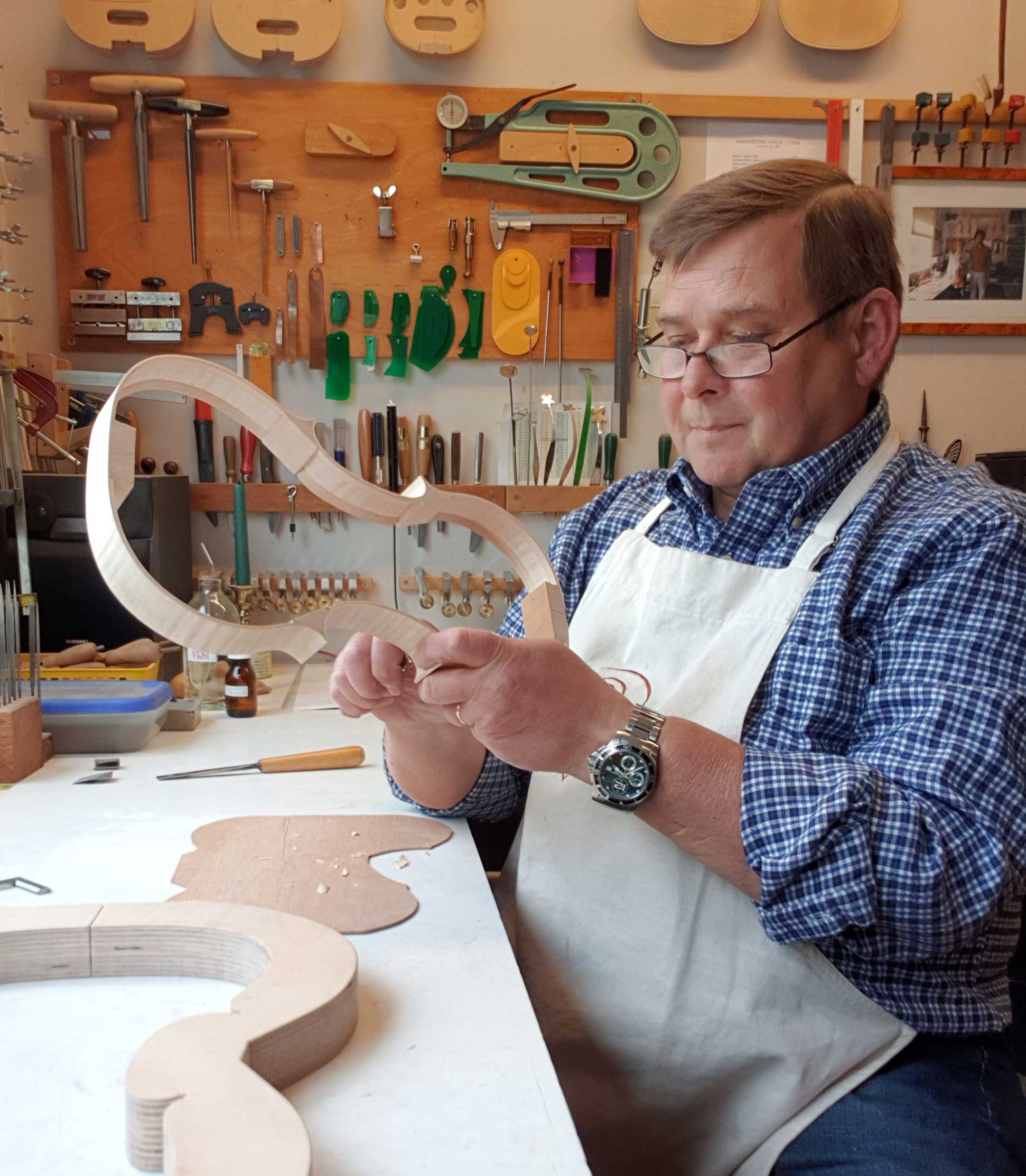 Viulunrakennuksesta hän kiinnostui 1970-luvun lopulla, ja rakensi ensimmäisen viulunsa Unto Virtasen opissa v. 1982. V. 1983 hän opiskeli viulunrakennusta ja korjausta Helsingissä Risto Wainion liikkeessä, ja samana vuonna hän perusti oman viululiikkeen. Myöhemmin hän on käynyt useita lyhyitä viulunrakennus- ja restaurointikursseja, joissa opettajina ovat toimineet mm. Jean Bauer, Jan Pawlikowski, Malcolm Siddall, John Dilworth, Simeone Morassi ja Ensio Kelloniemi. Vuonna 2007 hän opiskeli viulunrakennusta Firenzessä Paolo Vettori:n liikkeessä.